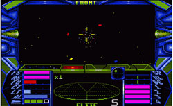 can be said that hasn't been said already? Elite set the benchmark for all space dogfight/trading games on the 8 Bit computers then transferred to the 16 Bit Atari ST and Amiga for full-on solid filled polygon graphics as supposed to matchstick vectors. The Amiga probably had the edge over the ST due to its superior sound quality but the gameplay remains the same. Lots of flying about from planet to planet trading machinery, food and furs with the occasional drugs-run when your ship had been upgraded with appropriate fire-power. It was always fun to test your skills by opening fire on a space station as you were docking then trying to avoid collision with the launching police vipers before letting loose your arsenal of bum-hungry targeted missiles on them. |